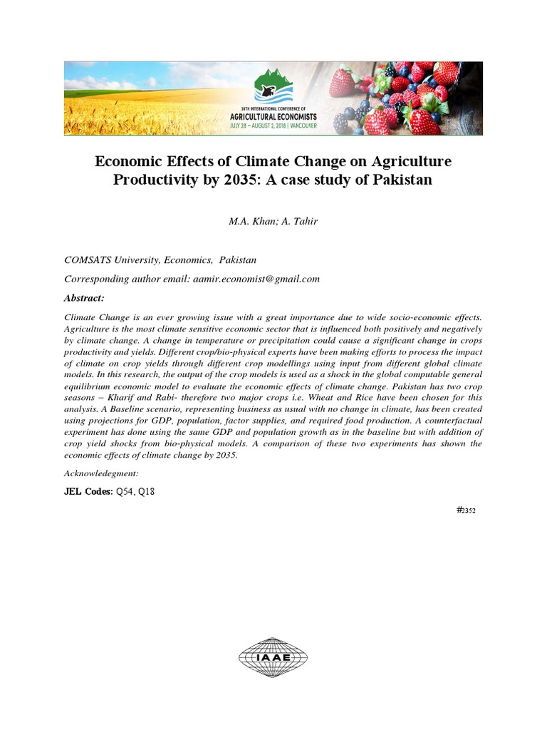 Economic Effects of Climate Change On Agriculture Productivity by 2035: A Case Study of Pakistan