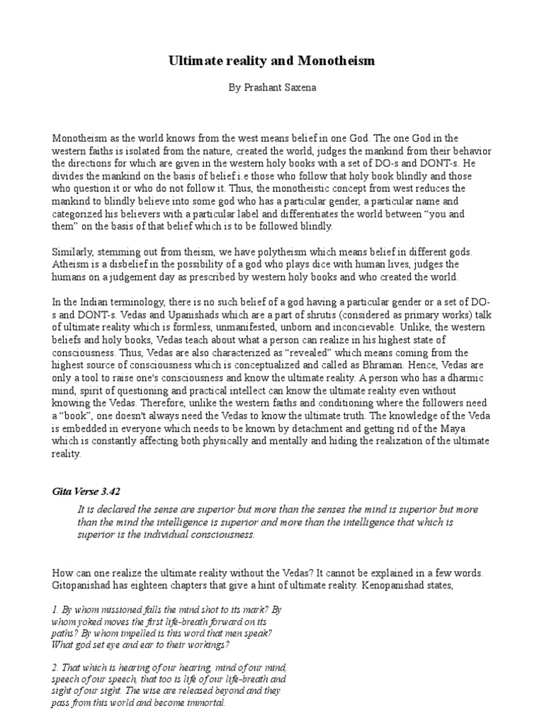 The fundamental differences between monotheism as originated in west and the concept of ultimate