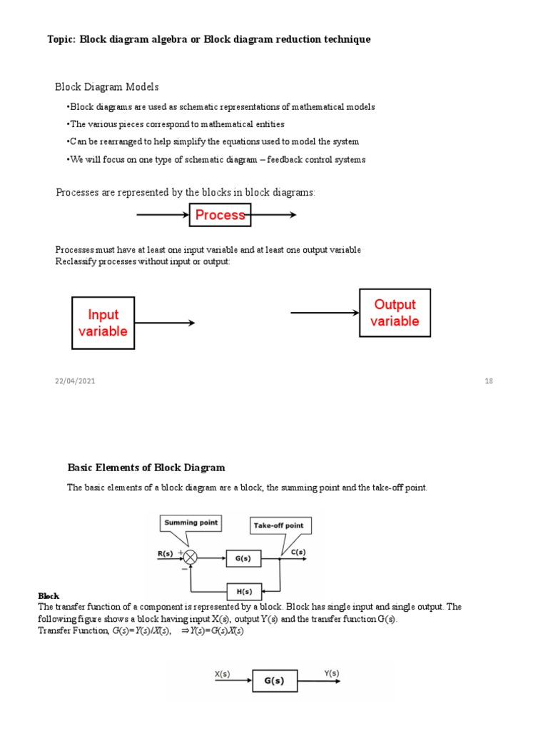 The transfer function of a component is represented by a block. Block has single input and single output. The