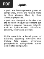 • Lipoproteins Combinations of lipid and protein - important cellular constituents,