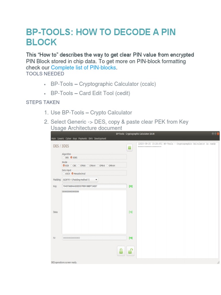 9. Paste the result from DES3 decode step into the PIN block