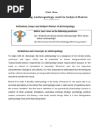“study of.” Quite literally, anthropology is the study of humanity. It is the study of