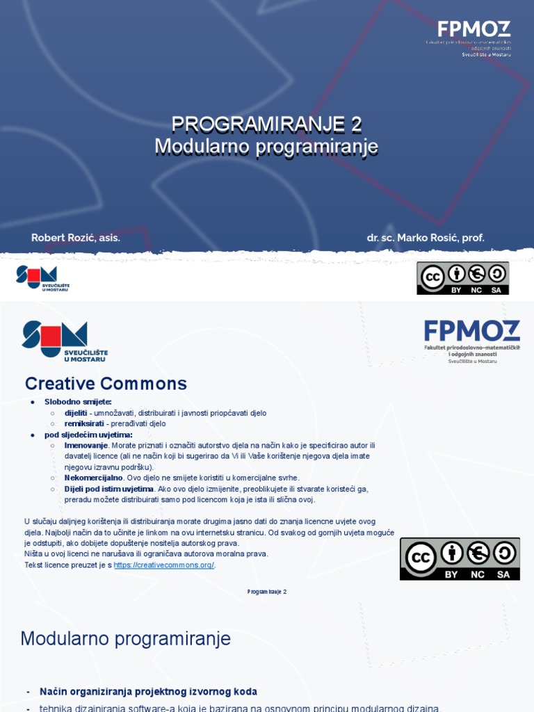programiranju, korištenje apstrakcije i enkapsulacije, ideje pisanja proširivih modula itd.