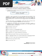 sports. You have to write simple sentences using the vocabulary and structures you learnt.