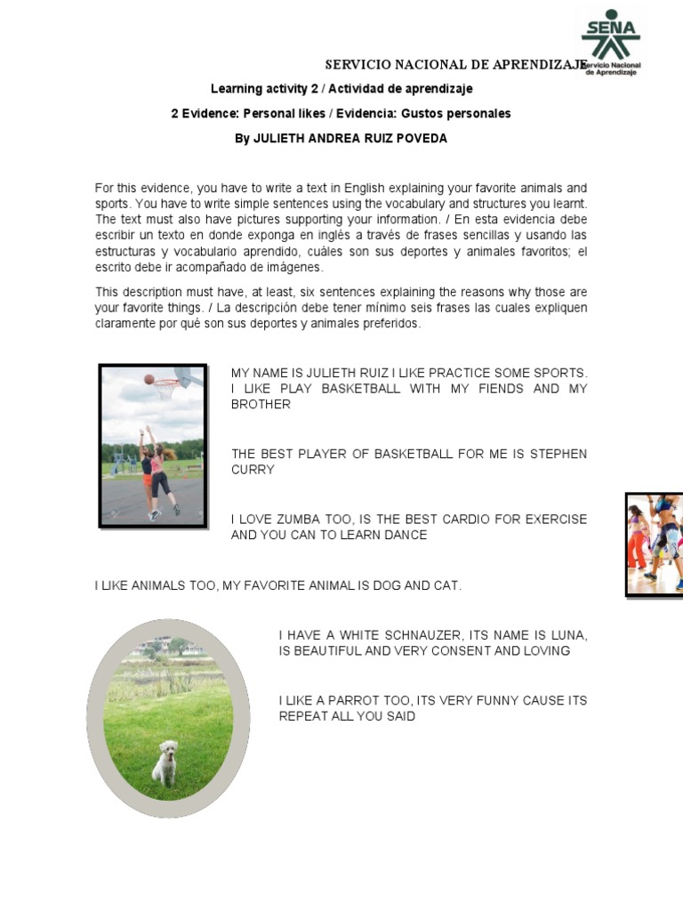 2 Evidence: Personal likes / Evidencia: Gustos personales