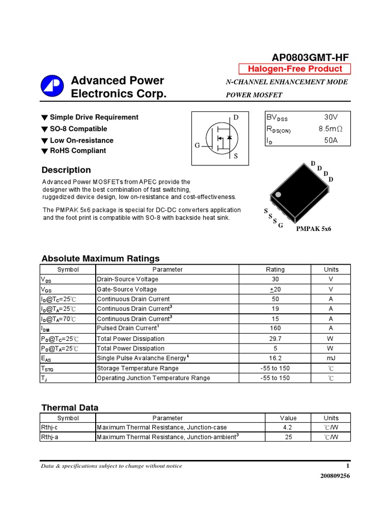 Advanced Power N-CHANNEL ENHANCEMENT MODE