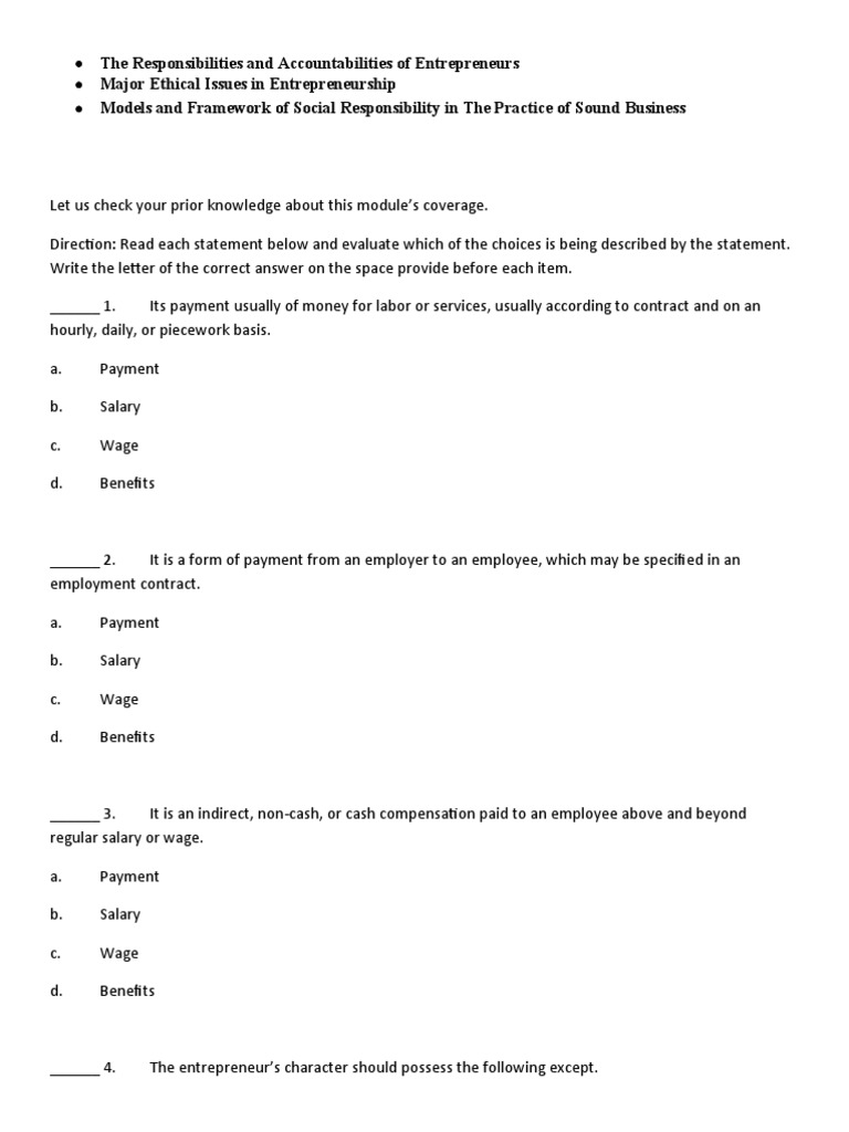 ______ 10. Entrepreneurs have the accountability to remunerate for the established amounts with the