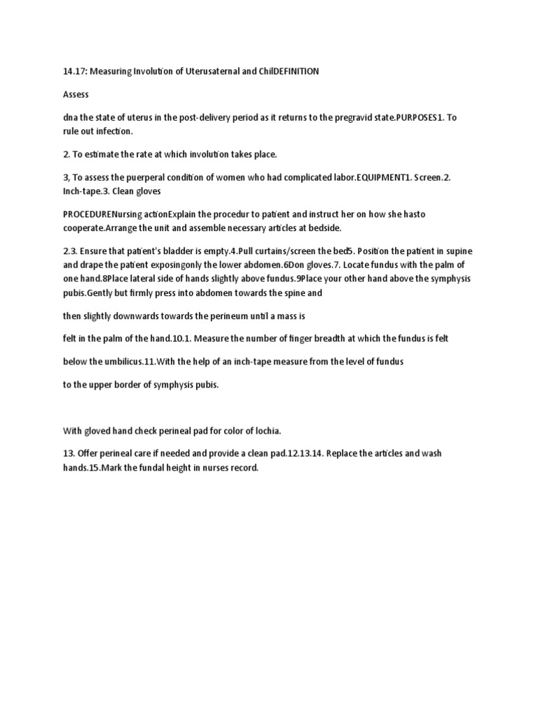 17: Measuring Involution of Uterusaternal and ChilDEFINITION