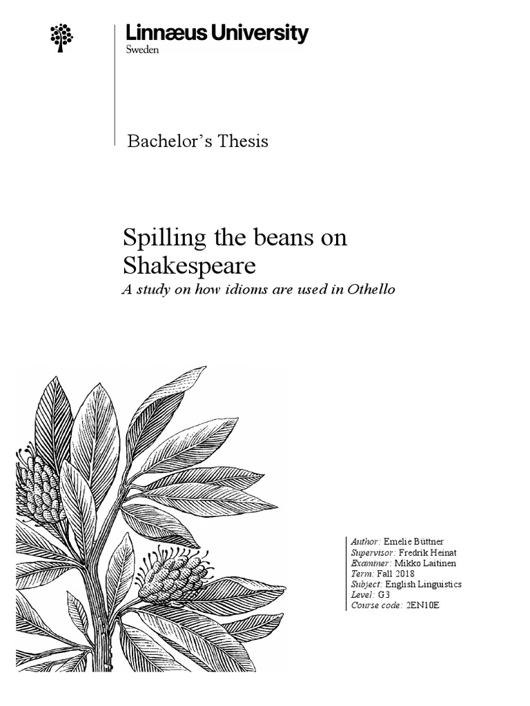 Characterization, idiomatic expressions, idioms, Othello, properties of idioms,