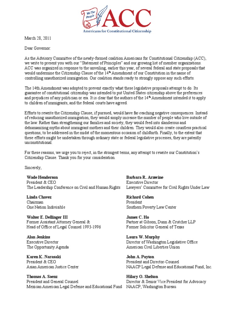 The 14th Amendment was adopted to prevent exactly what these legislative proposals attempt to do. Its guarantee of constitutional citizenship was intended to put United States citizenship above the preferences and prejudices of any politician or era. It is clear that the authors of the 14th Amendment intended it to apply to children of immigrants, and the federal courts have agreed.