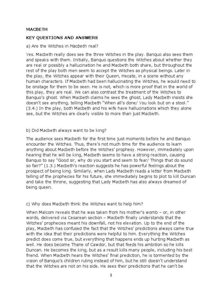 anything about Macbeth before the Witches’ prophesy. However, immediately upon