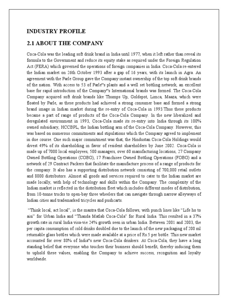 accounted for over 80% of India‟s new Coca-Cola drinkers. At Coca-Cola, they have a long