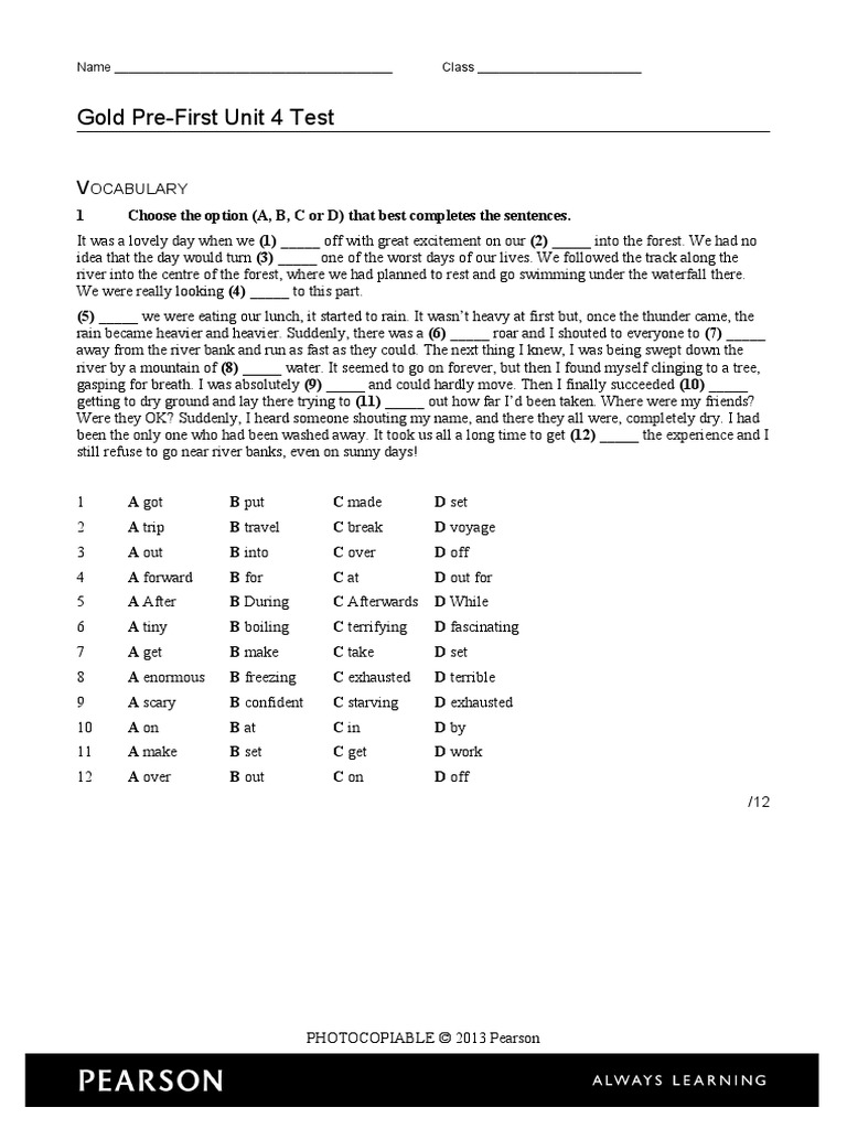 1 Choose the option (A, B, C or D) that best completes the sentences.