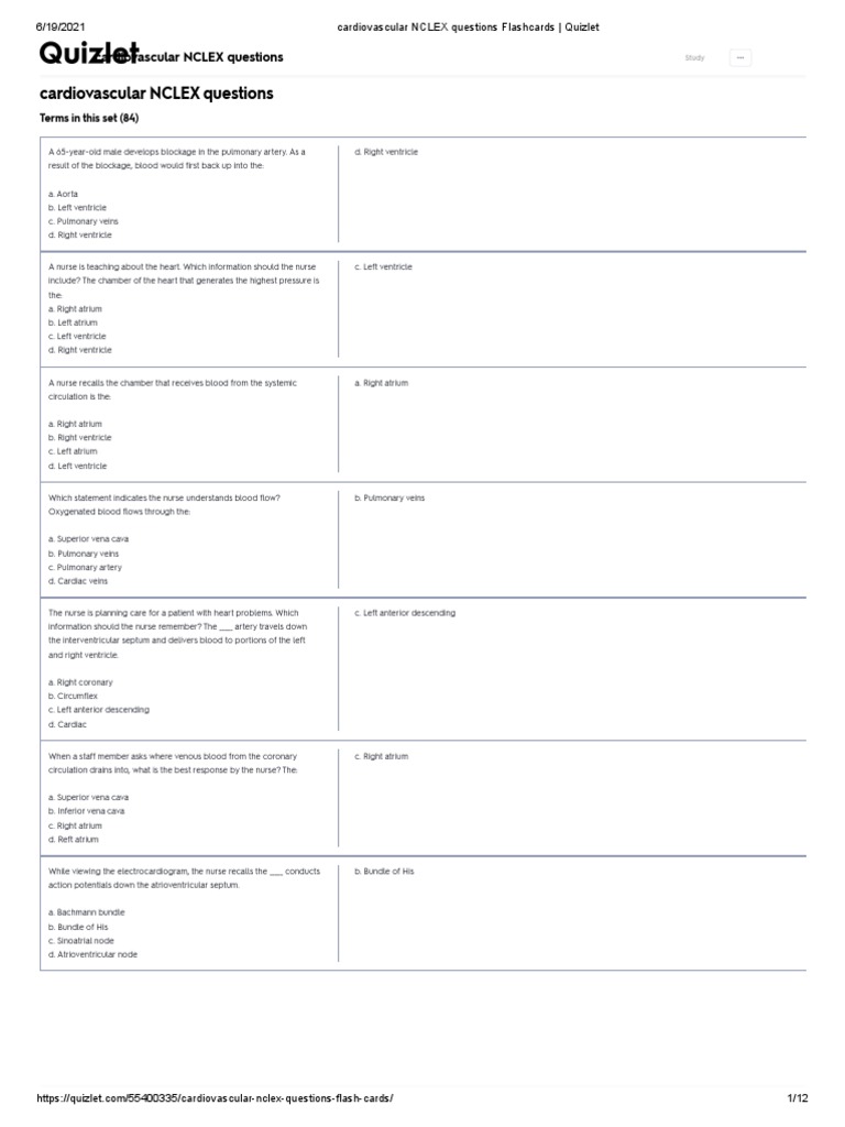 6/19/2021 cardiovascular NCLEX questions Flashcards | Quizlet