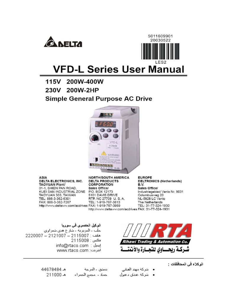 ﺷ ﻜﺮا ﻻﺧﺘﻴ ﺎرآﻢ اﻧﻔﺮﺗ ﺮ دﻟﺘ ﺎ ﺳﻠ ﺴﻠﺔ .VFD-Lإن ﺳﻠ ﺴﻠﺔ VFD–Lه ﻲ ﺳ ﻠﻌﺔ ﻣ ﺼﻨﻮﻋﺔ ﺑﺎﺳ ﺘﺨﺪام ﻣﻜﻮﻧ ﺎت ﻋﺎﻟﻴ ﺔ