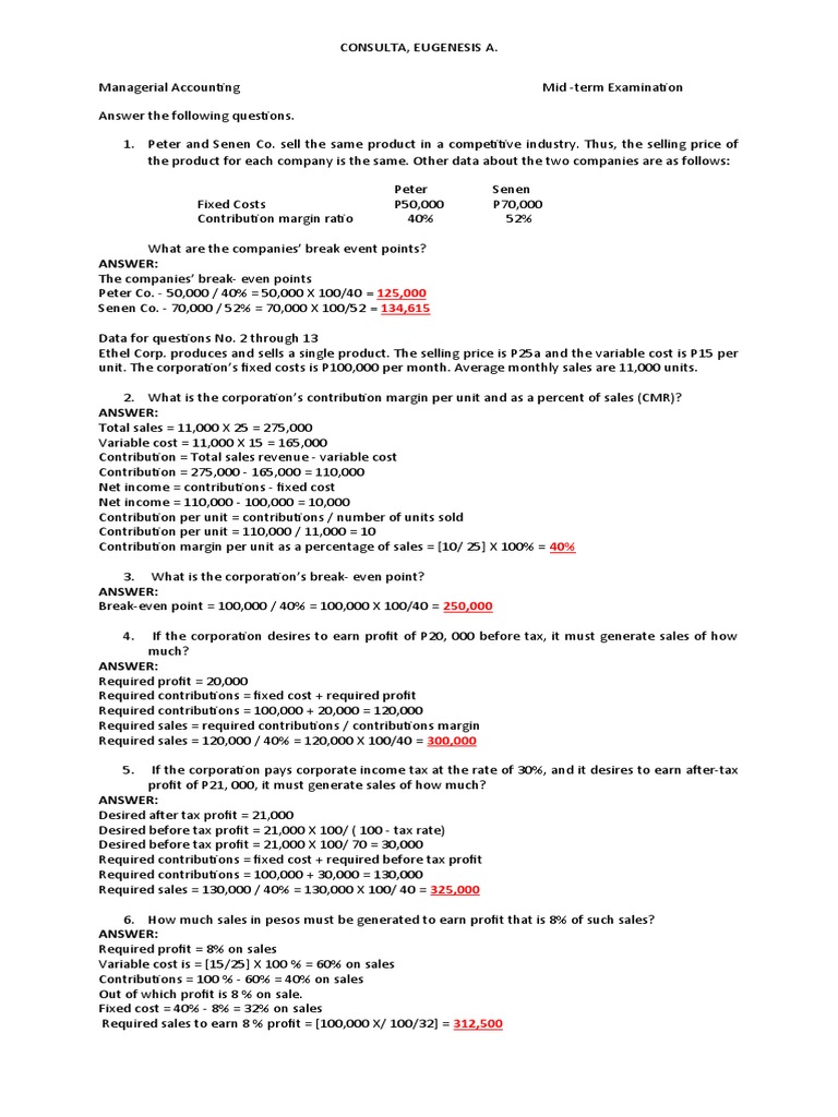 Managerial Accounting Mid -term Examination