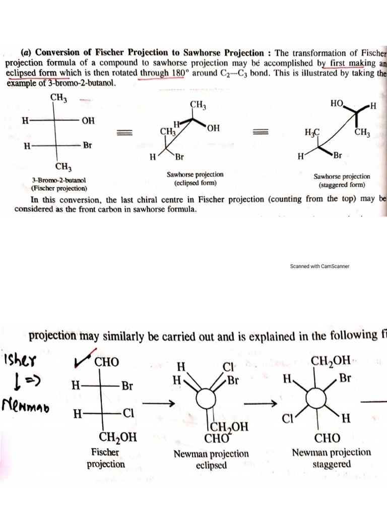 ‘Scanned with CamSeanner(a) Conversion of Fischer Projection to Flying Wedge Representation :