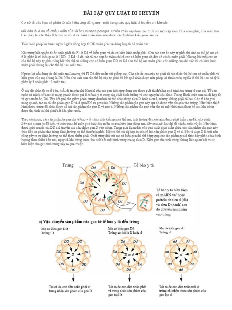cũng gây ra sự định hướng cơ thể theo chiều phải. Cuối cùng đối với mẹ có kiểu gen dd chỉ đóng góp các sản phẩm gen d thúc đẩy phân chia định
