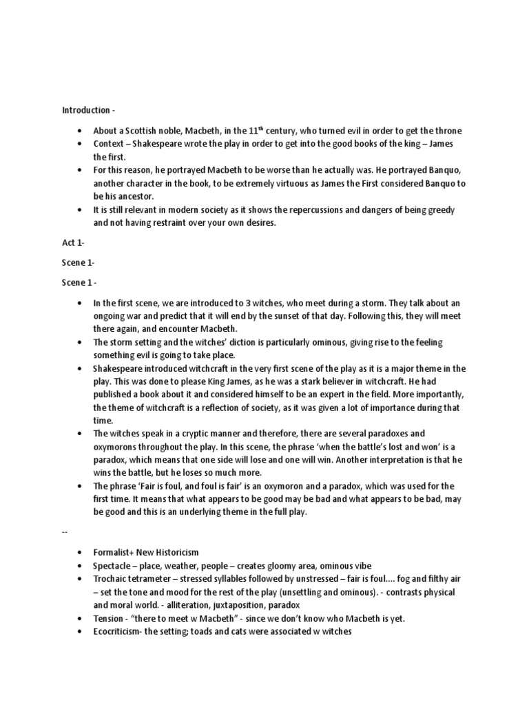 • Tension - “there to meet w Macbeth” - since we don’t know who Macbeth is yet.