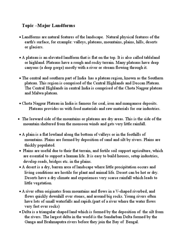 earth's surface, for example: valleys, plateaus, mountains, plains, hills, deserts