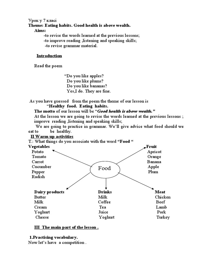 Fruit and vegetables-healthy food –because they contain a lot of vitamins. They