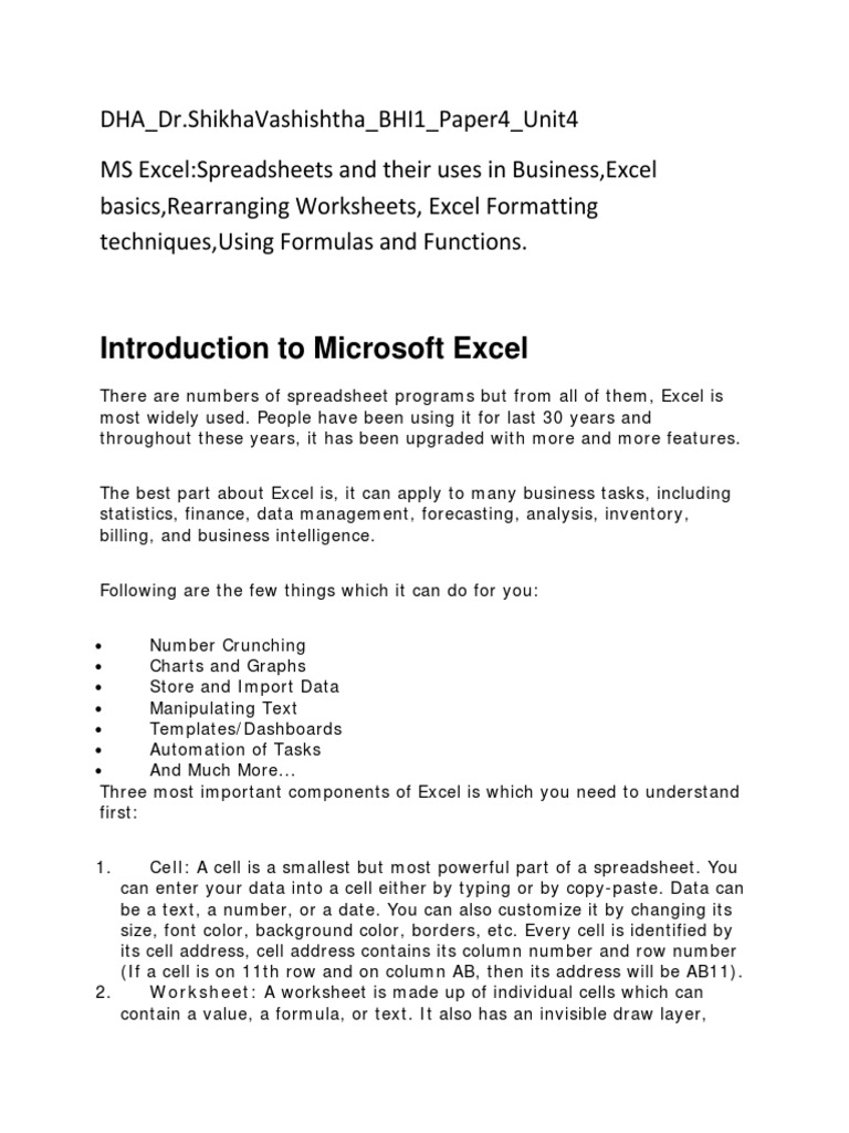 MS Excel:Spreadsheets and their uses in Business,Excel