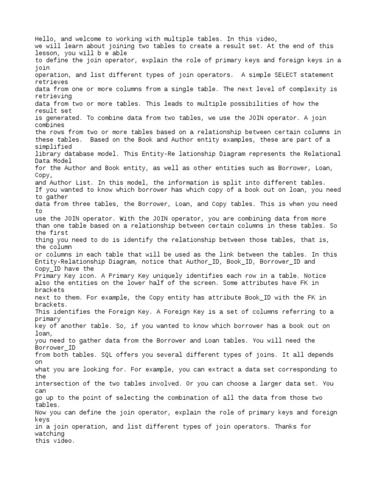 is generated. To combine data from two tables, we use the JOIN operator. A join