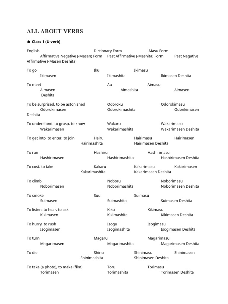 Affirmative Negative (-Masen) Form Past Affirmative (-Mashita) Form Past Negative