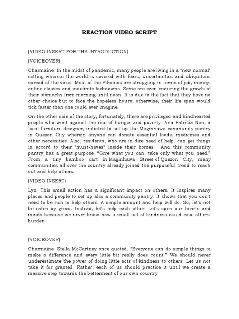 REACTION VIDEO SCRIPT