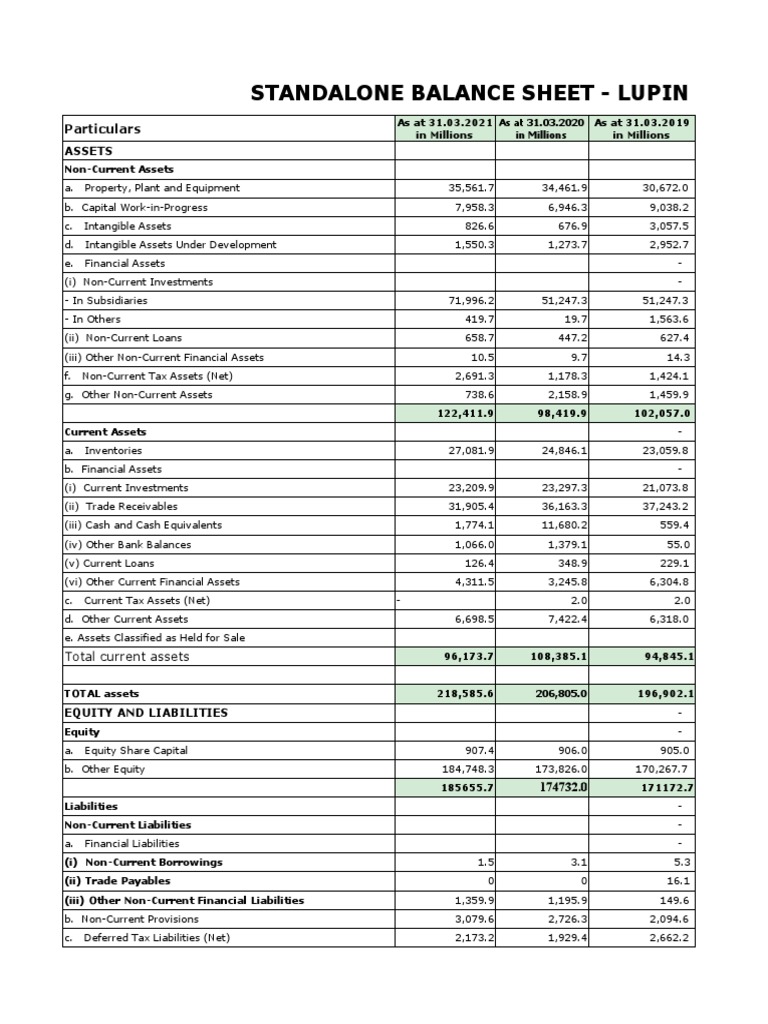 STANDALONE BALANCE SHEET - LUPIN LTD.