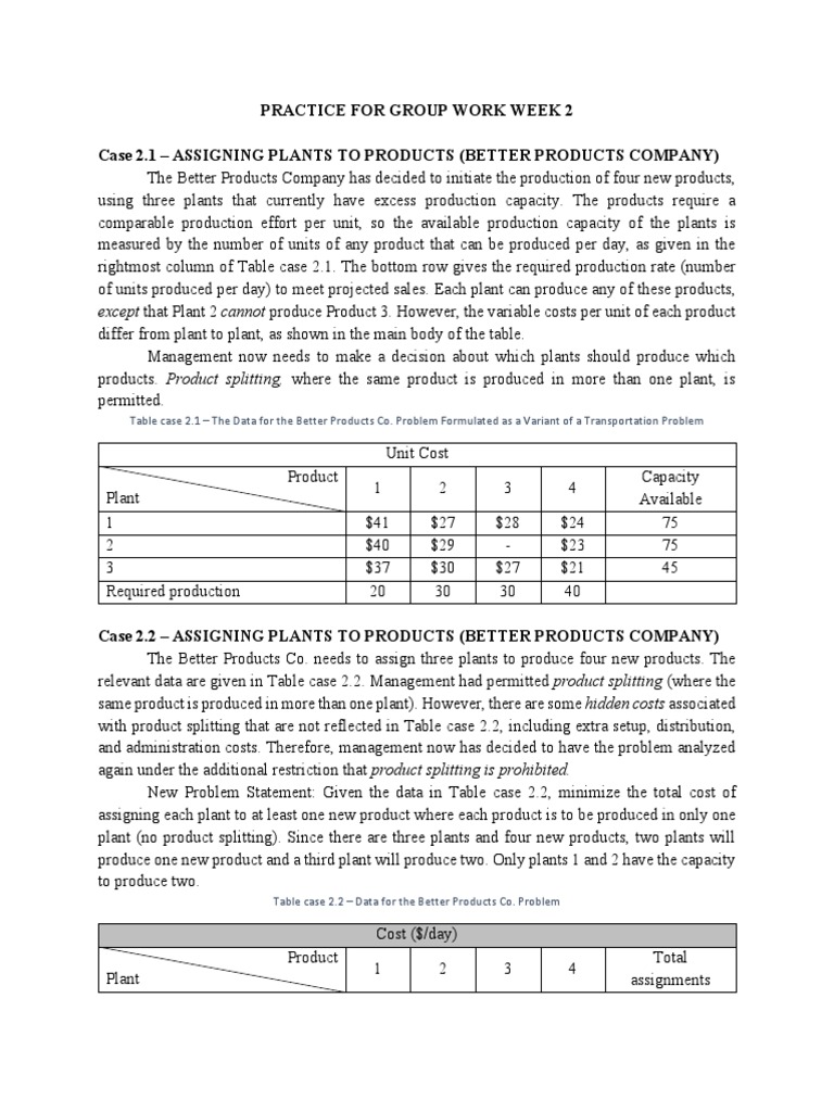 Case 2.2 – ASSIGNING PLANTS TO PRODUCTS (BETTER PRODUCTS COMPANY)