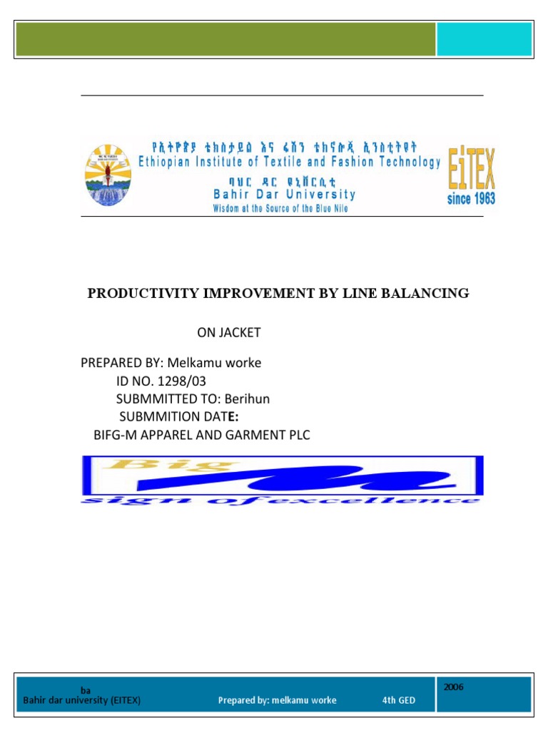 balancing in Big-m garment factory. In this title discusses about objective of the project,