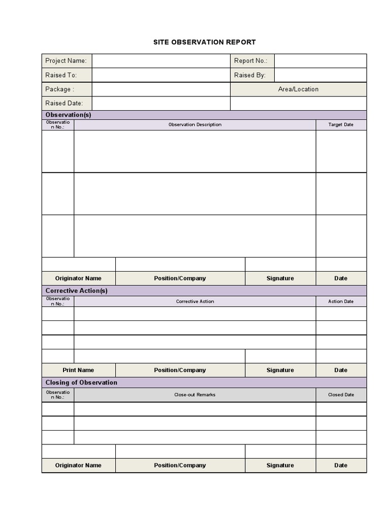 SITE OBSERVATION REPORT