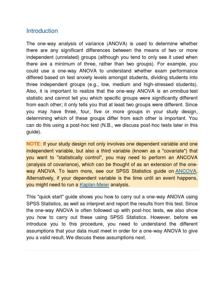 way ANOVA. To learn more, see our SPSS Statistics guide on ANCOVA.