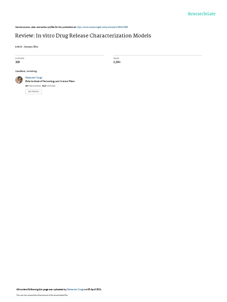 Drug release is the process by which a drug system. The quantitative interpretation of the