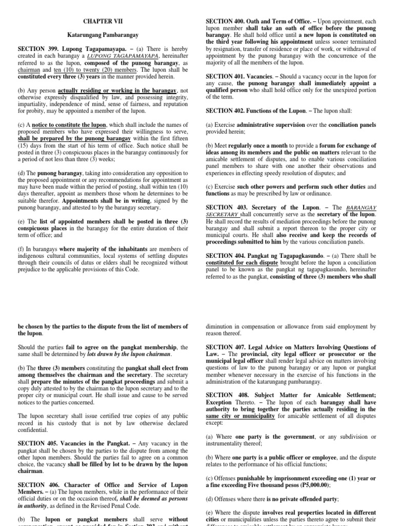 of this Code. The Department of the Interior and Local (f) Disputes involving parties who actually reside in barangays of