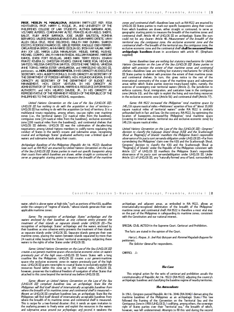 PROF. MERLIN M. MAGALLONA, AKBAYAN PARTY-LIST REP. RISA zones and continental shelf.—Baselines laws such as RA 9522 are enacted by