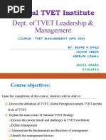 (MoE, 2010). The results obtained after reform the development of frame works for TVET and the forthcoming TVET