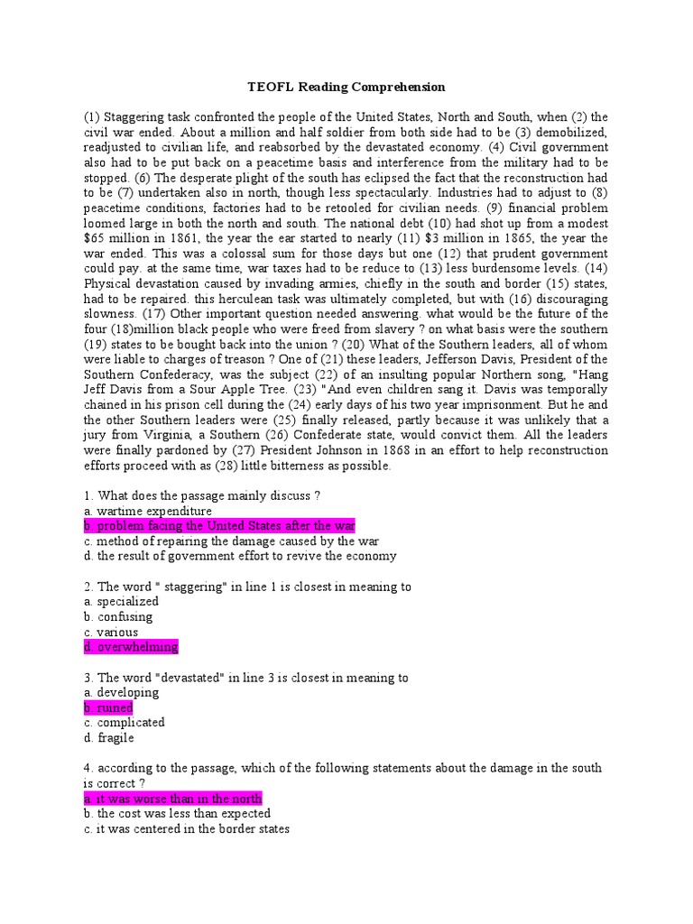 (1) Staggering task confronted the people of the United States, North and South, when (2) the