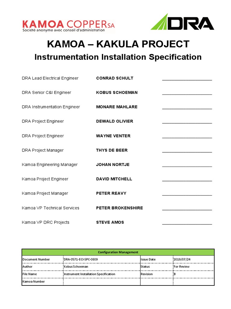Kamoa Copper SA. The user must ensure that it is the current version prior to using it.