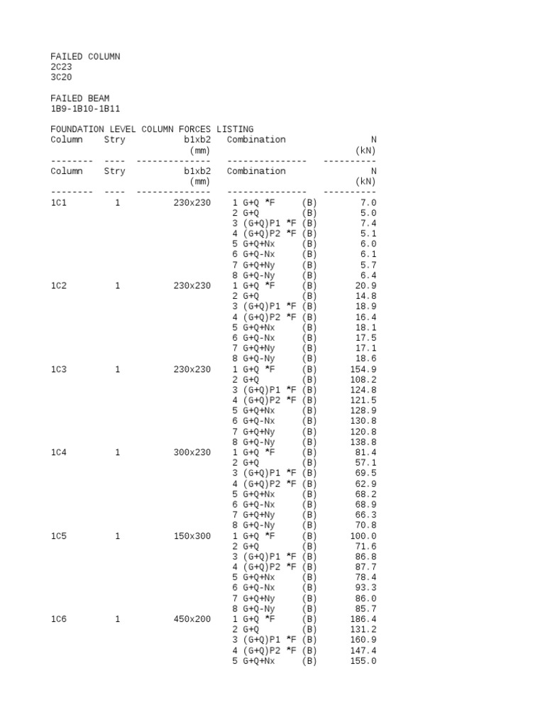 FOUNDATION LEVEL COLUMN FORCES LISTING