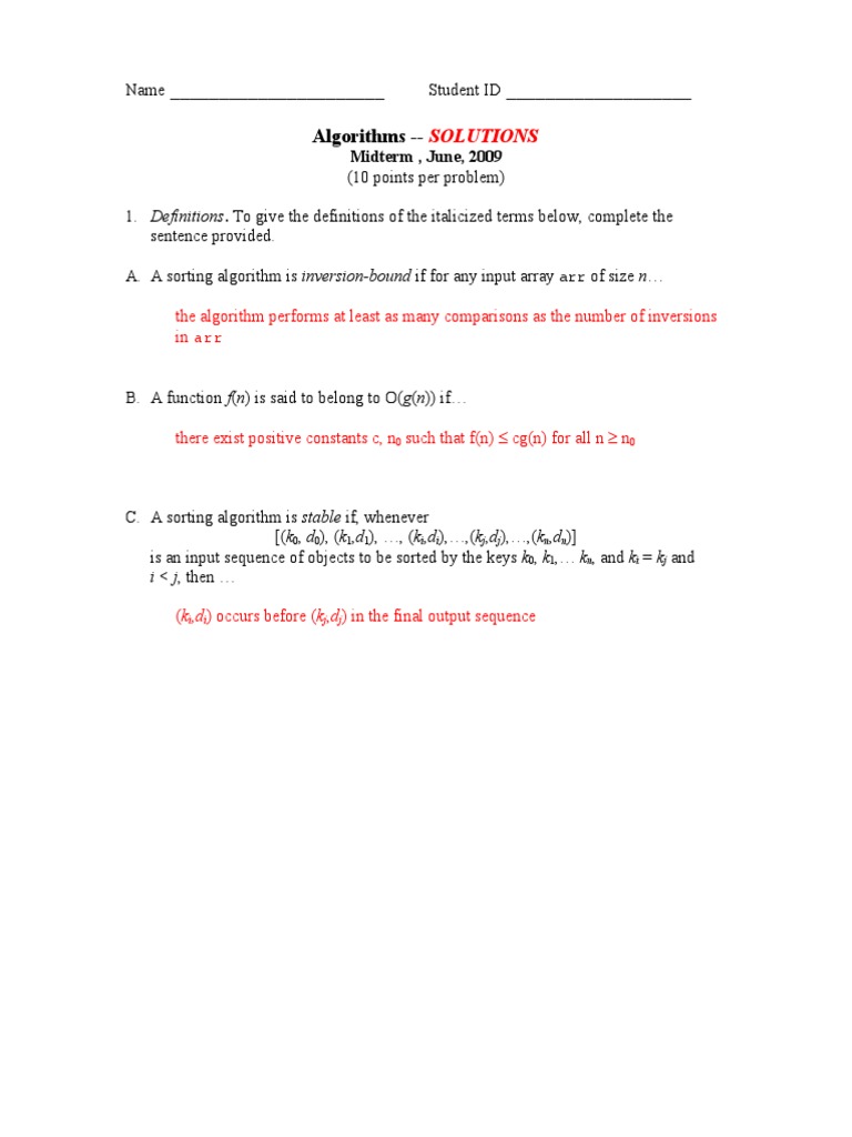 Algorithms -- SOLUTIONS