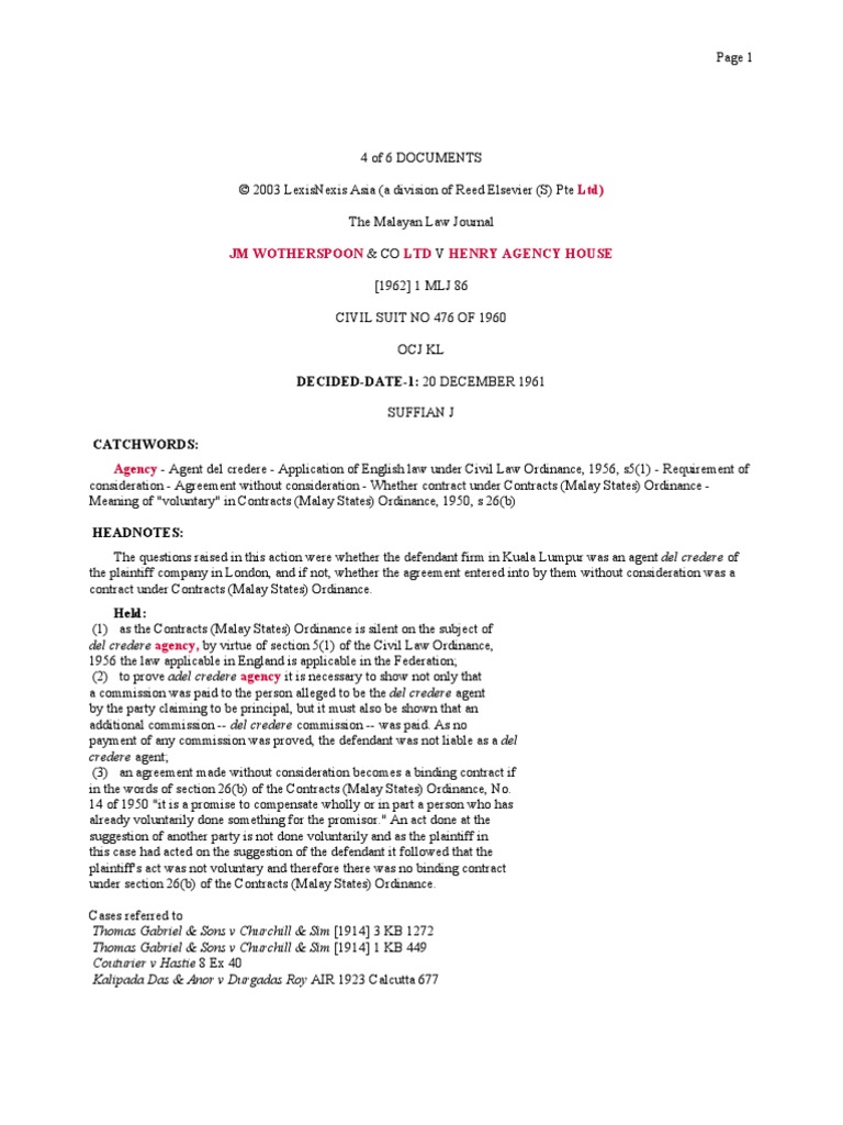The questions raised in this action were whether the defendant firm in Kuala Lumpur was an agent del credere of
