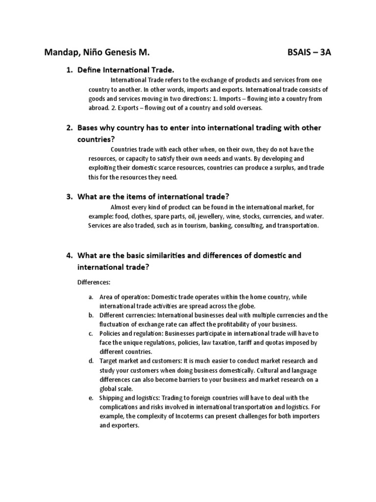 b. International Trade and Domestic Trade involve the exchange, buying, and selling of
