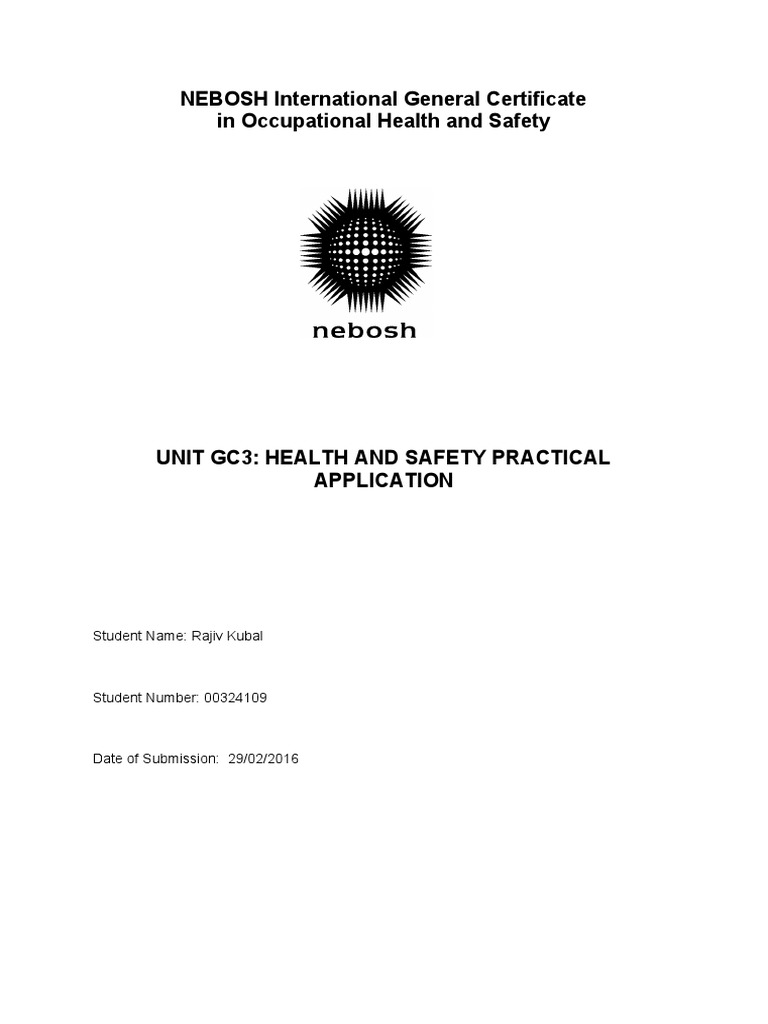 I declare that I have marked this work and am both qualified and approved by NEBOSH to do so. I recognise