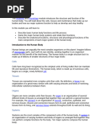 The human body is a complex, highly organized structure made up of unique cells that work together to accomplish