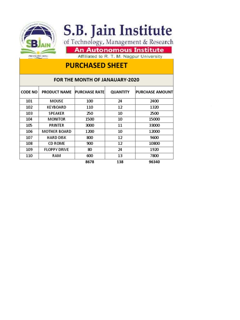 CODE NO PRODUCT NAME PURCHASE RATE QUANTITY PURCHASE AMOUNT