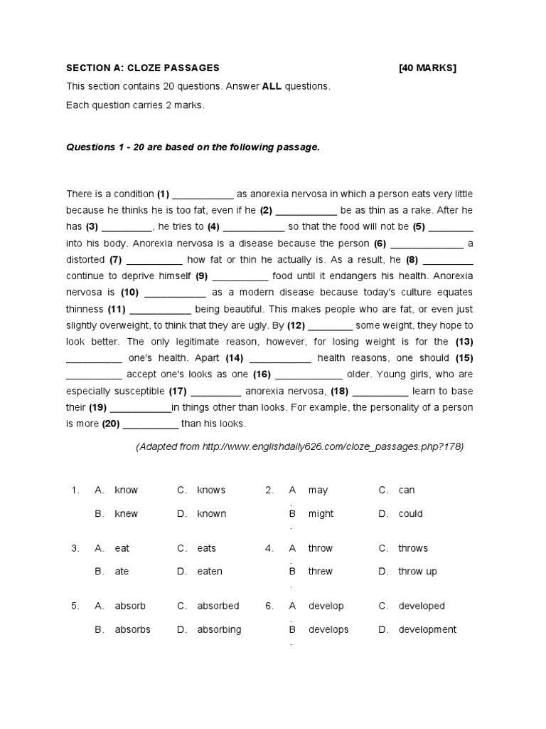 SECTION A: CLOZE PASSAGES [40 MARKS]