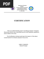 This is to certify that GENA L. LARITA has rendered her immersion at Kibawe National High