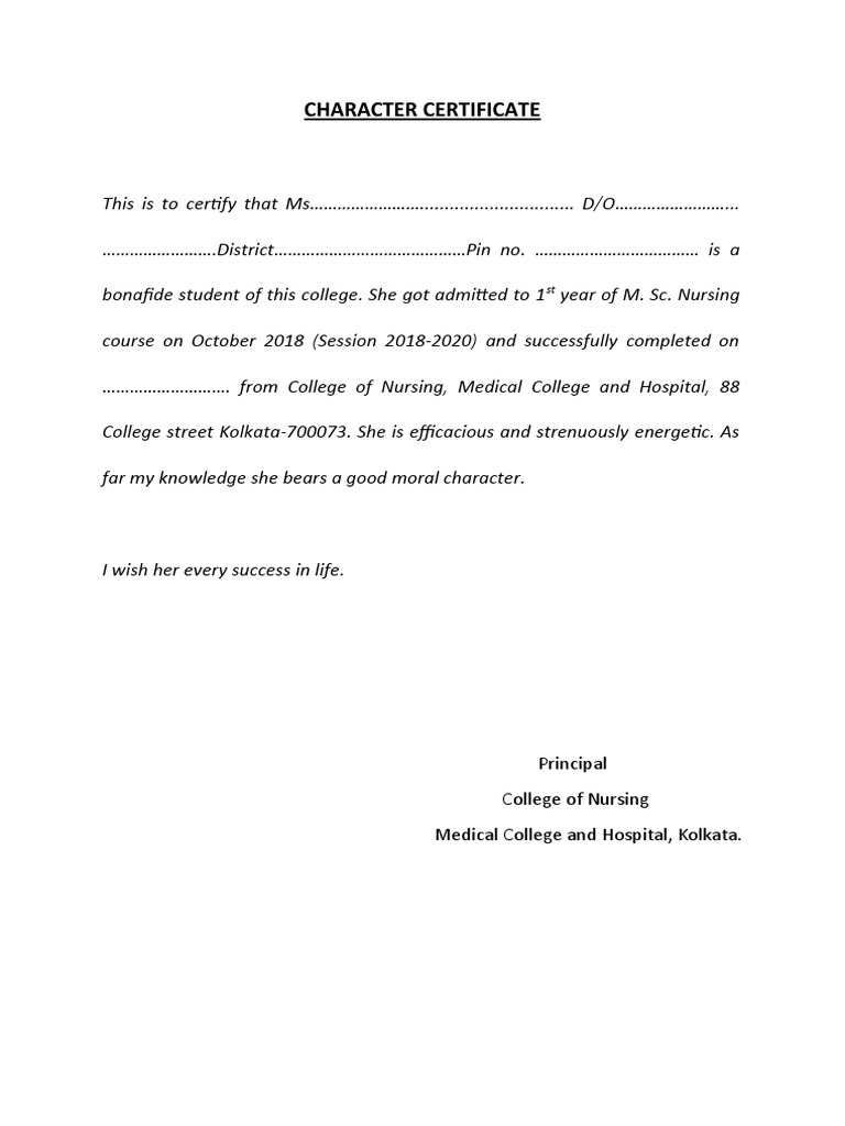 CHARACTER CERTIFICATE